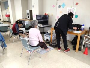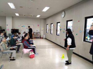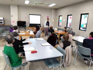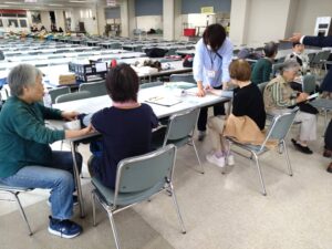 11月11日(火)のルーテルかよう会では、熊本市中央区役所福祉課・ささえりあ子飼(地域包括支援センター)・理学療法士の指導のもと、日頃の運動の効果を確認するための体力測定と、フレイル(加齢に伴い体力・気力が低下した状態)予防に関するアンケート調査を実施しました。
