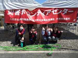9月6日(土)、八代市で行われた災害ボランティア活動に、学生1名とルーテル学院高校の生徒3名が参加しました。
